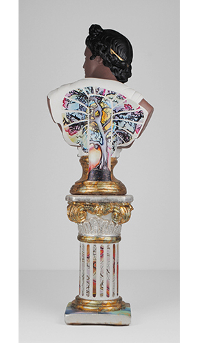 Acrylic, pigment print of original painting, 14k gold leaf, repurposed plaster figurine