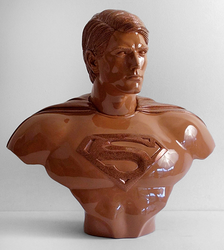 Pop icon “Superman” becomes brown. The glossy acrylic looks like milk chocolate proposing that “brown” is not only heroic, but also delicious and sweet.